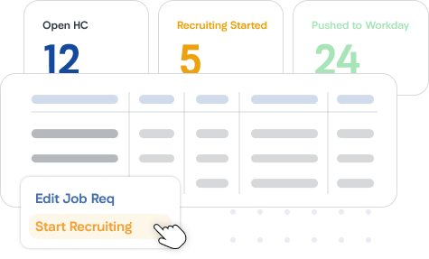 Know exactly where every position stands: open, filled, pending approval, in recruiting, offer extended. No more chasing status updates across three systems and four Slack channels.